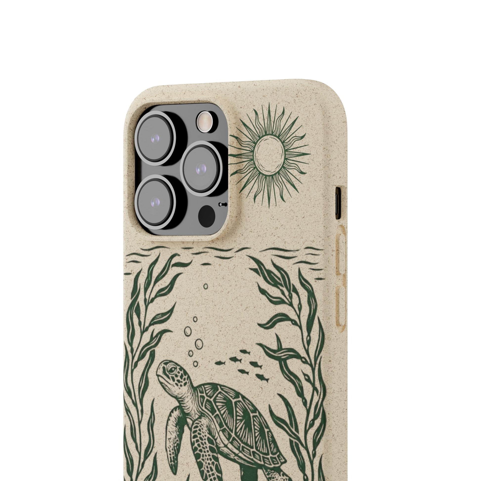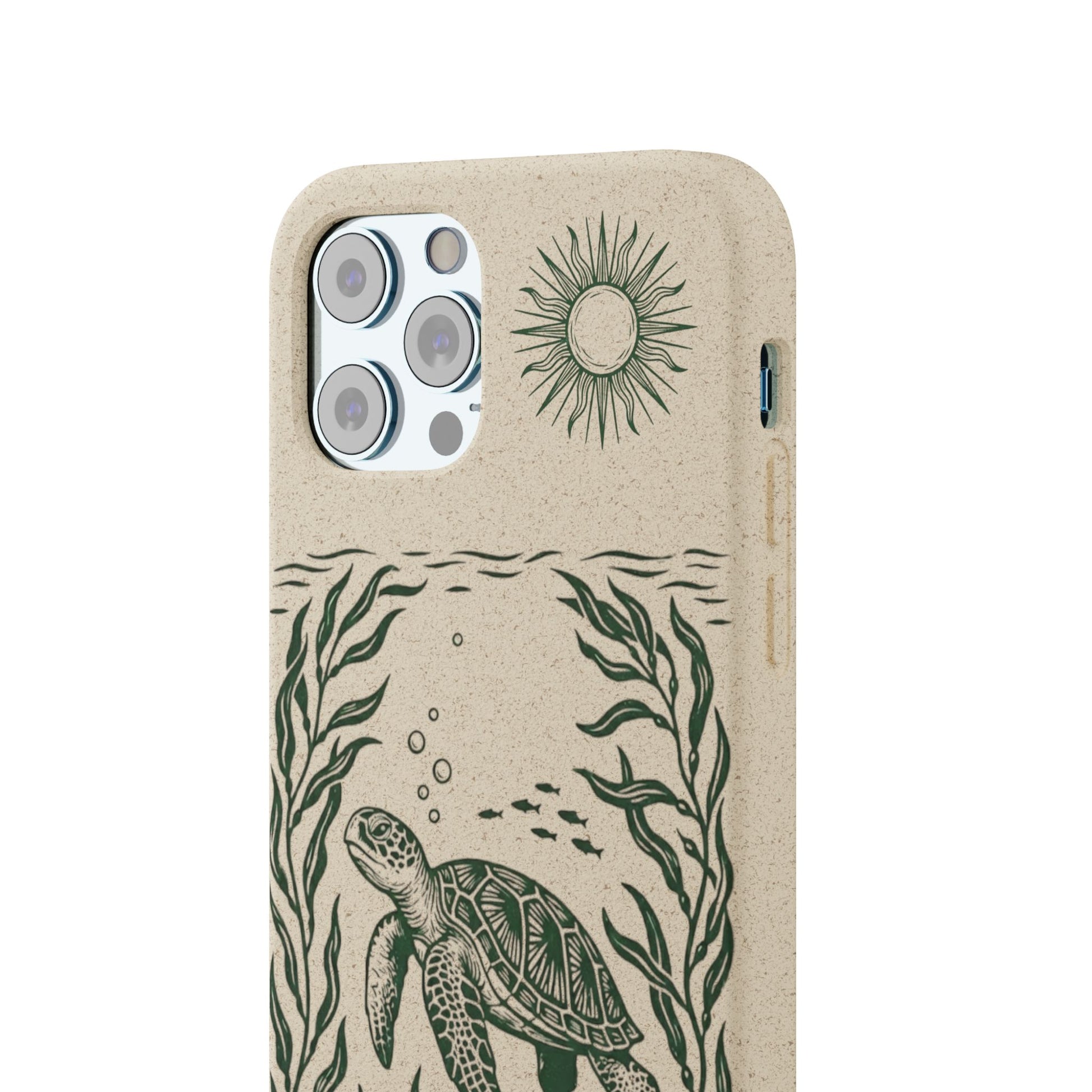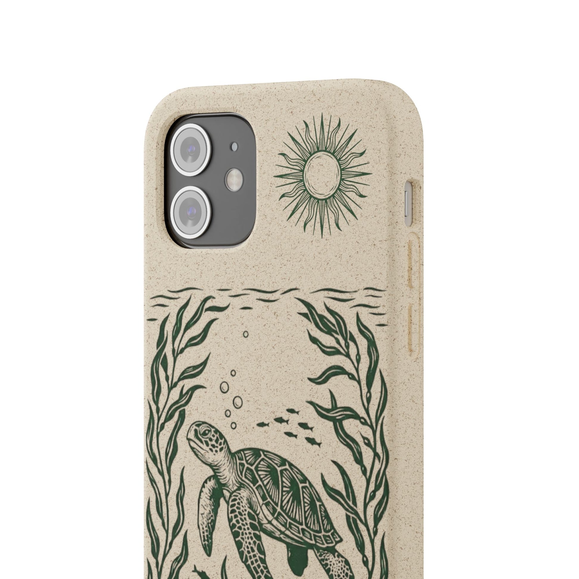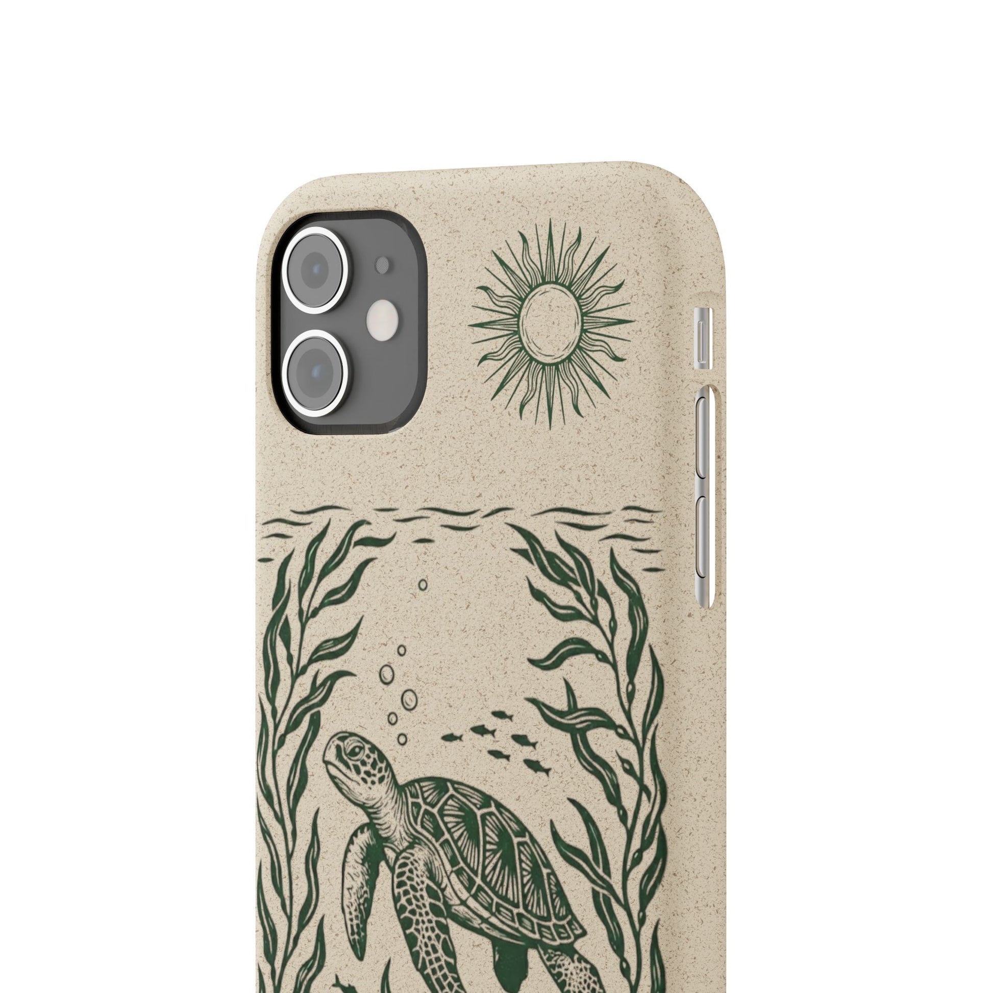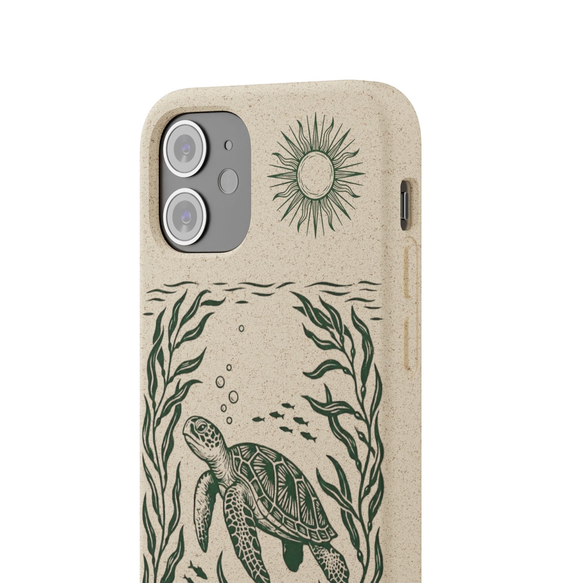 Cover Bio Originale per iPhone "Tartaruga & Sole" - Custodia Eco in Bambù & PLA