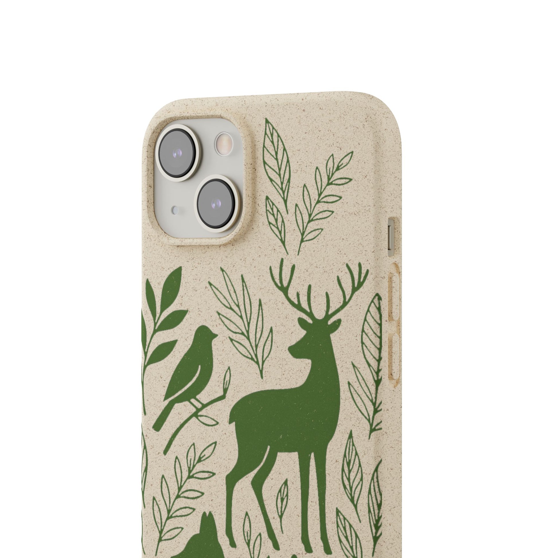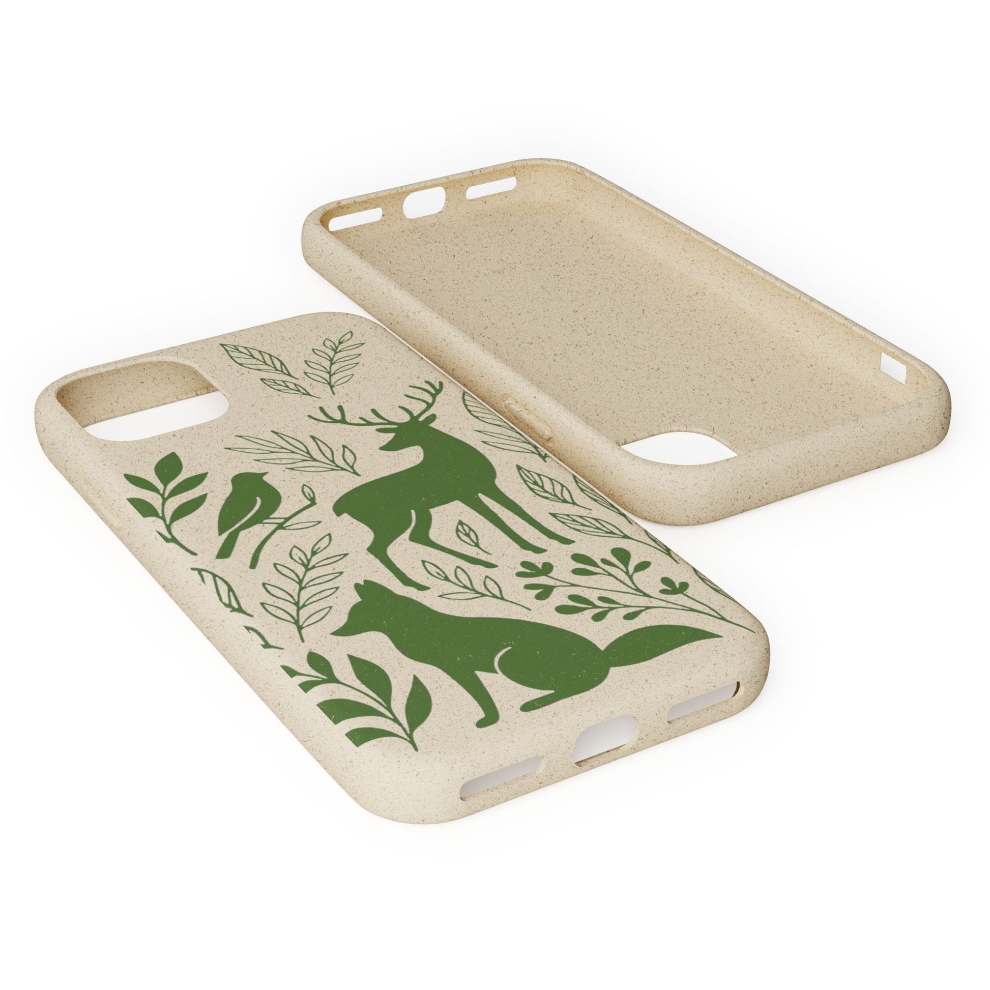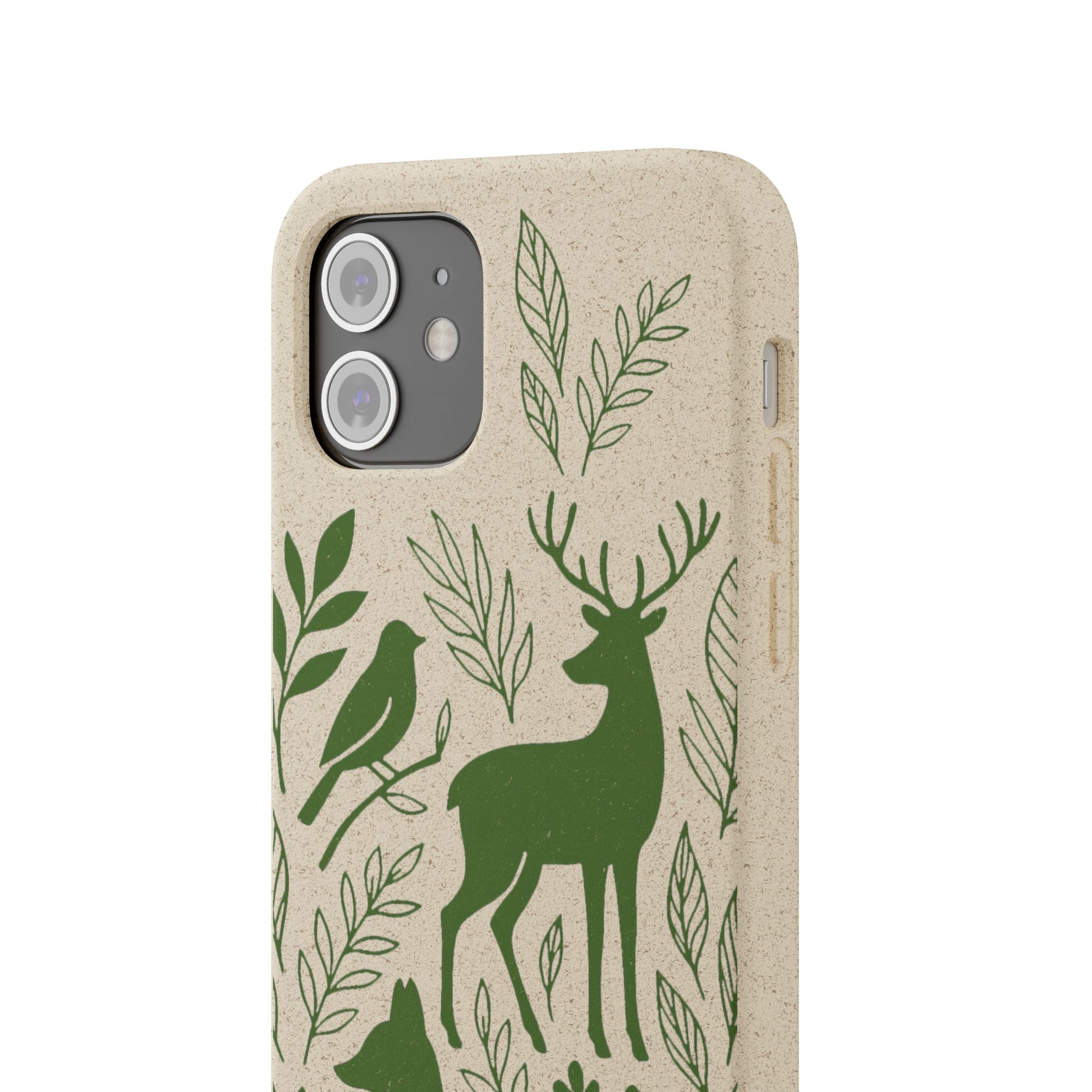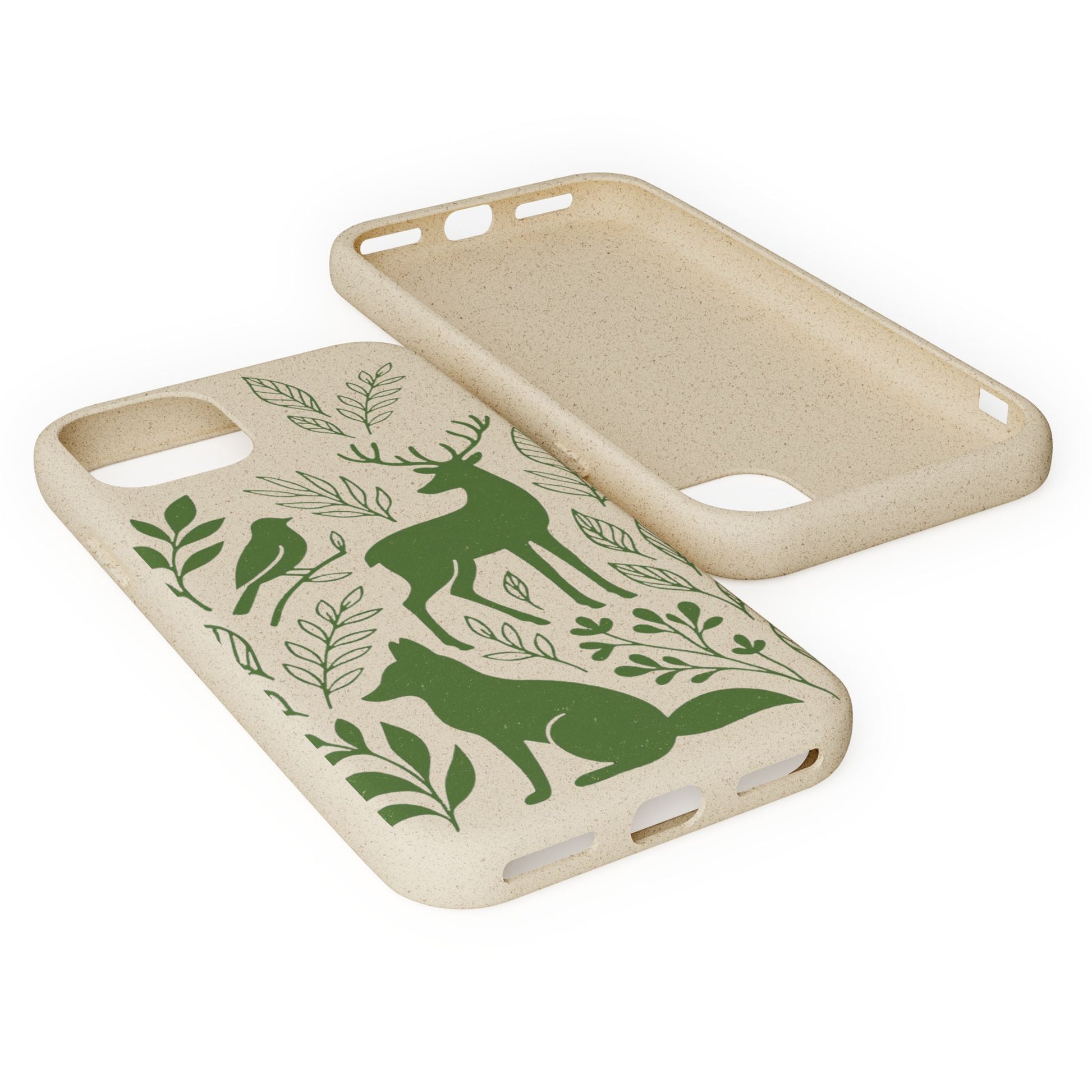 Porta con te lo spirito tranquillo del bosco, proteggendo il tuo telefono e il pianeta. Questa Cover Originale non è solo un accessorio, è un manifesto di gentilezza verso la natura. Caratterizzata dal design "Animali del Bosco", presenta le silhouette delicate in verde oliva di un cervo, una volpe e un uccellino immersi nel fogliame. Il disegno si fonde con la texture naturale del materiale, donando un tocco di autentica quiete alla tua giornata.