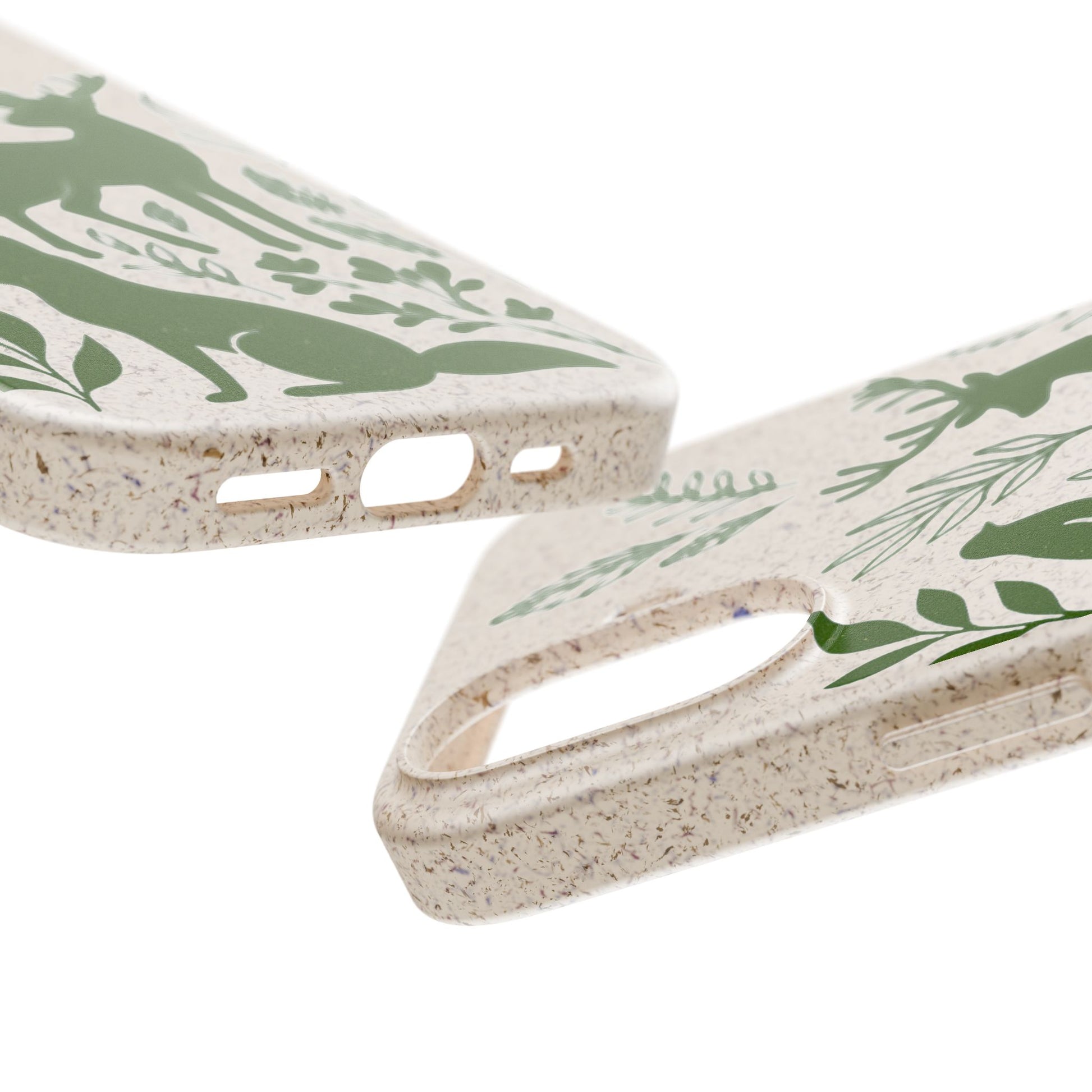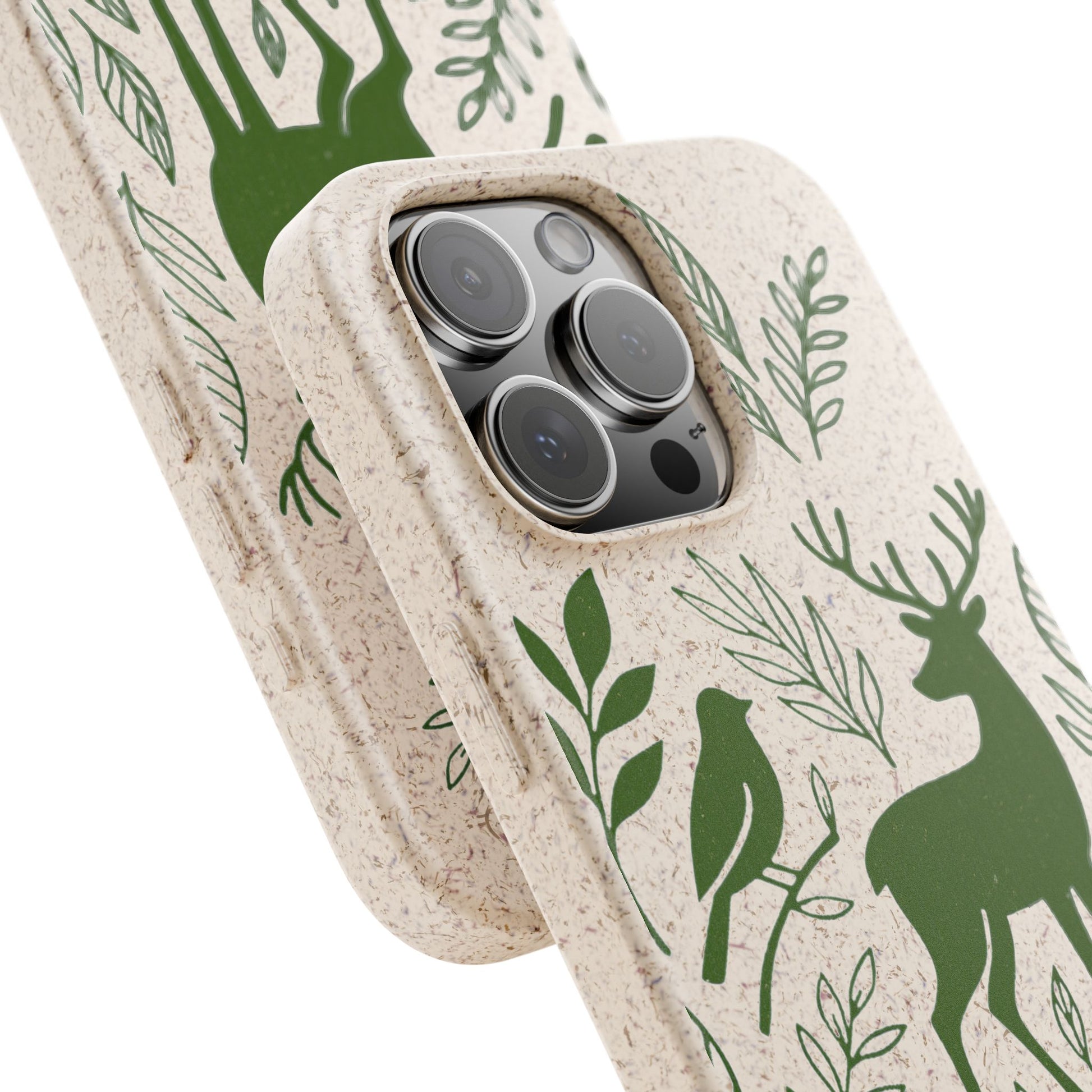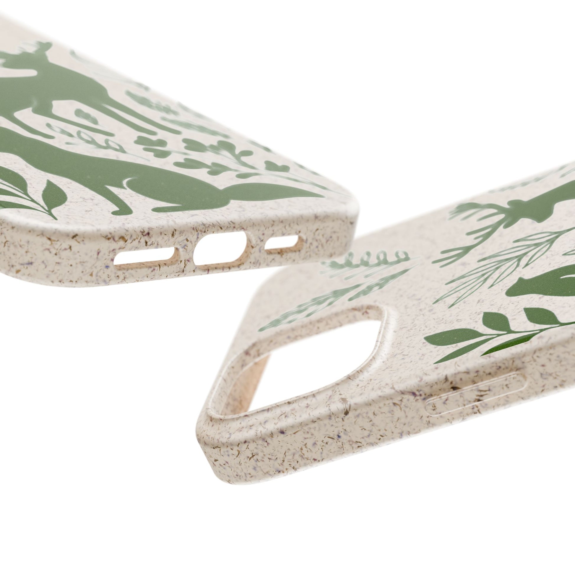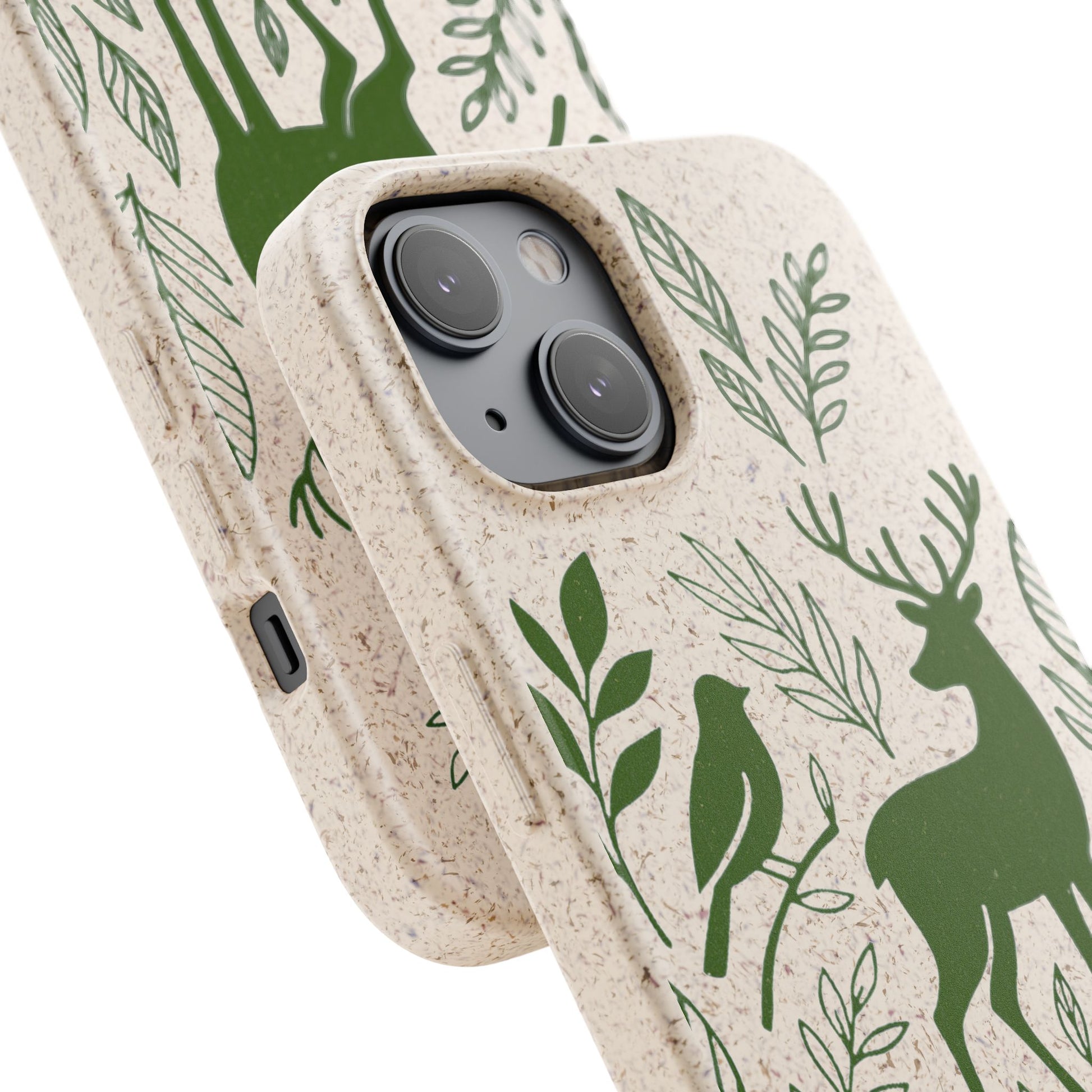 Porta con te lo spirito tranquillo del bosco, proteggendo il tuo telefono e il pianeta. Questa Cover Originale non è solo un accessorio, è un manifesto di gentilezza verso la natura. Caratterizzata dal design "Animali del Bosco", presenta le silhouette delicate in verde oliva di un cervo, una volpe e un uccellino immersi nel fogliame. Il disegno si fonde con la texture naturale del materiale, donando un tocco di autentica quiete alla tua giornata.