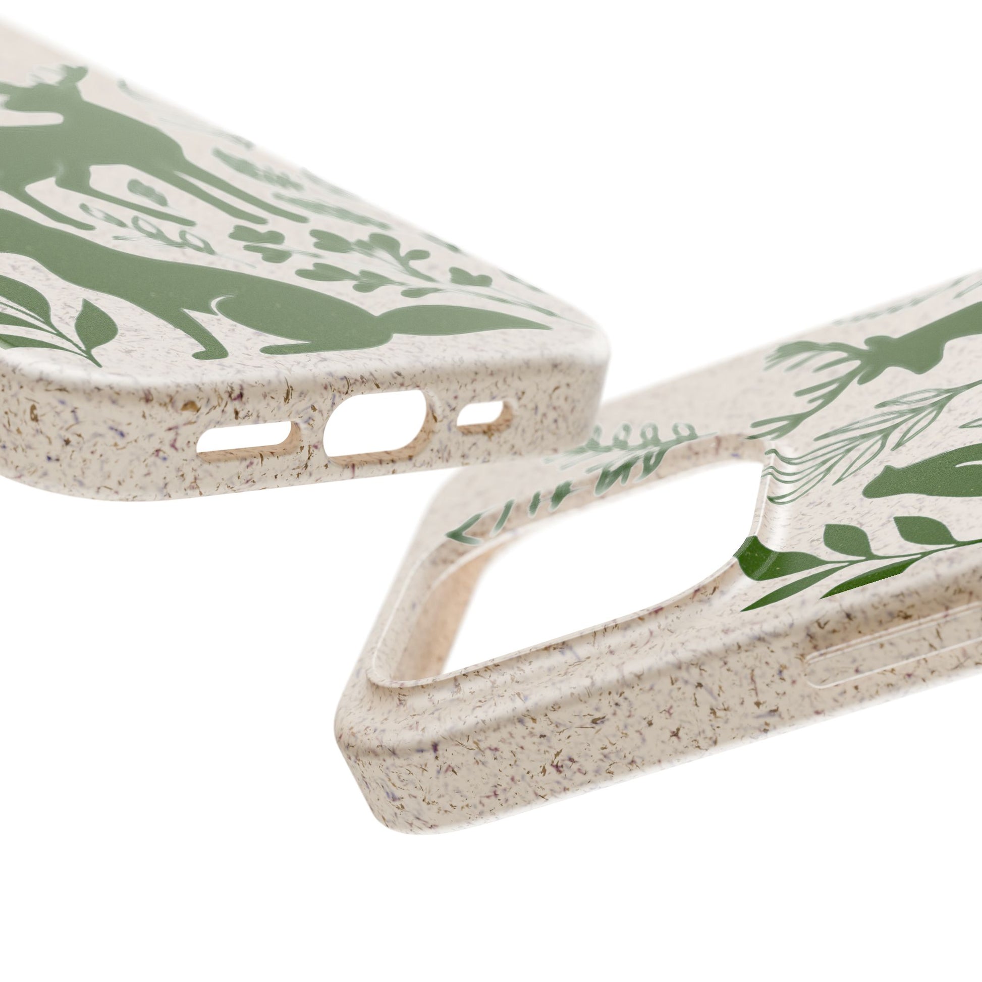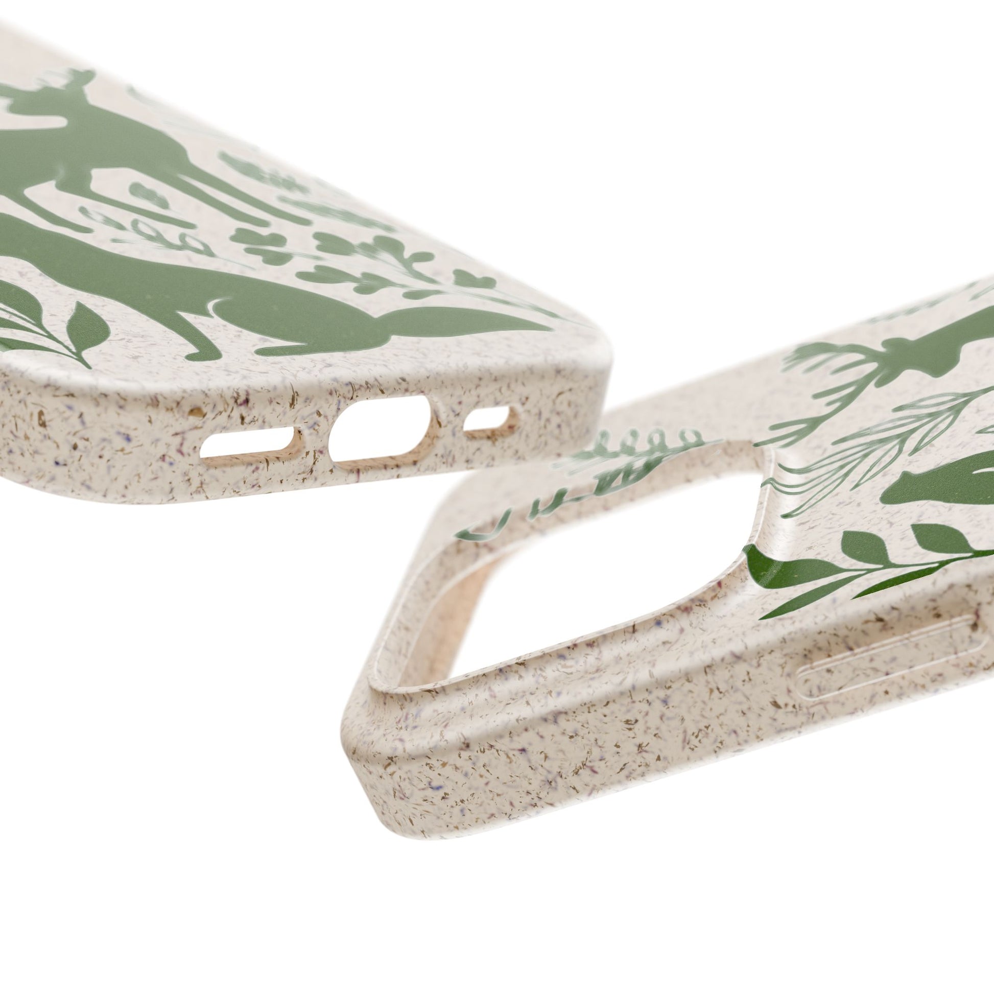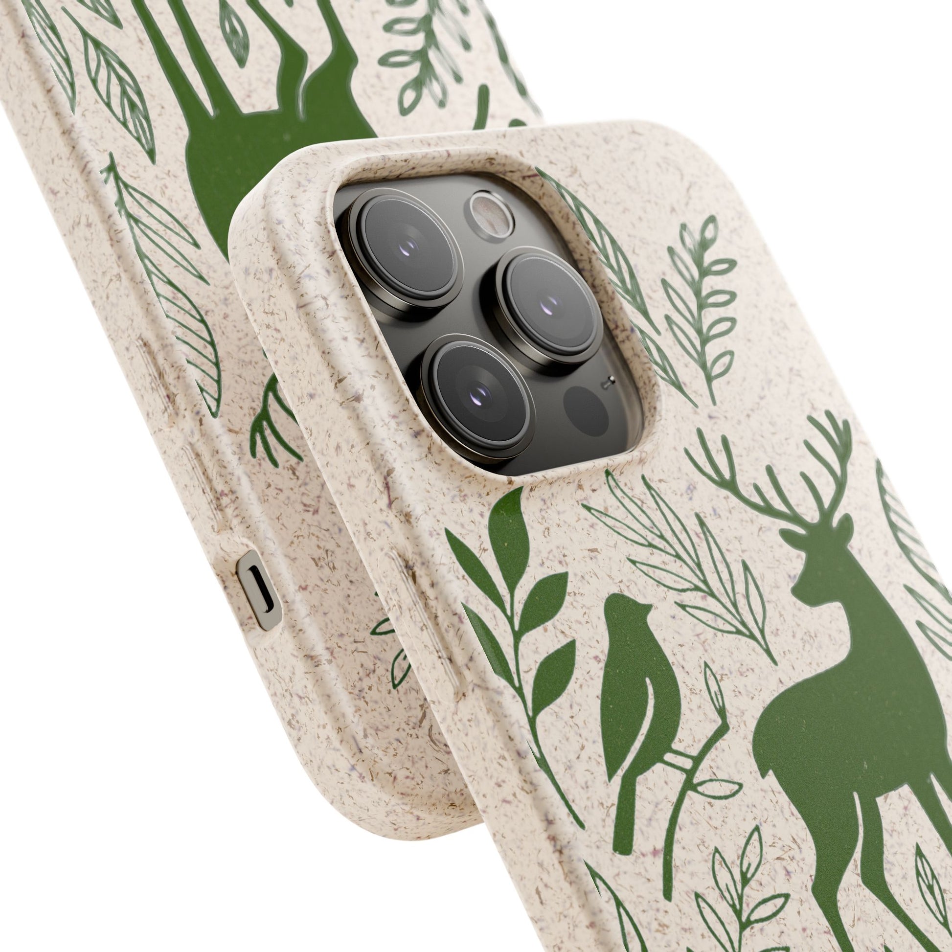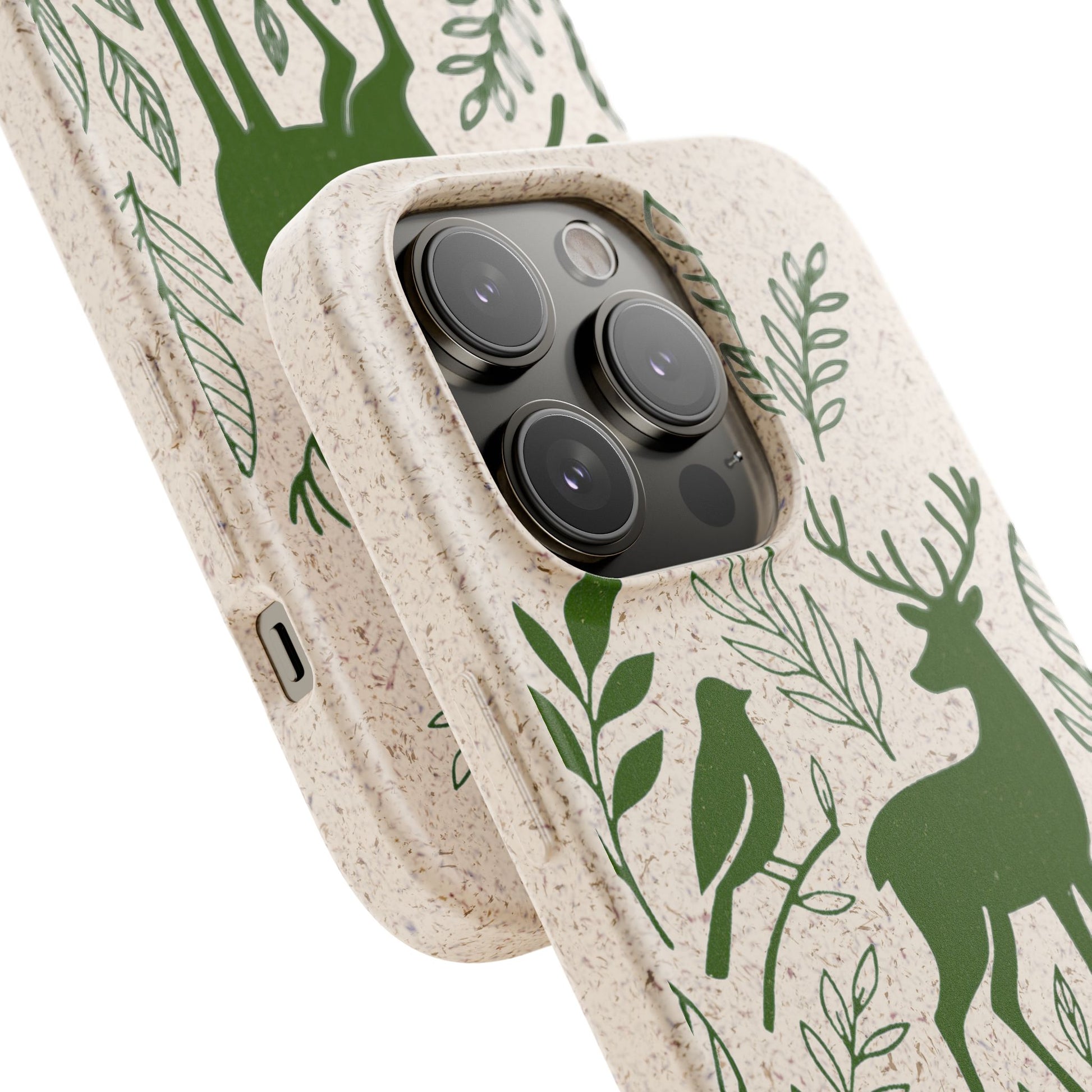 Porta con te lo spirito tranquillo del bosco, proteggendo il tuo telefono e il pianeta. Questa Cover Originale non è solo un accessorio, è un manifesto di gentilezza verso la natura. Caratterizzata dal design "Animali del Bosco", presenta le silhouette delicate in verde oliva di un cervo, una volpe e un uccellino immersi nel fogliame. Il disegno si fonde con la texture naturale del materiale, donando un tocco di autentica quiete alla tua giornata.